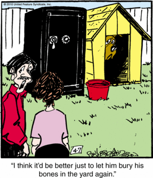 The strip on Sundays also has a side feature called “Dog Gone Funny,” in which one or more panels are devoted to dog anecdotes submitted by fans.